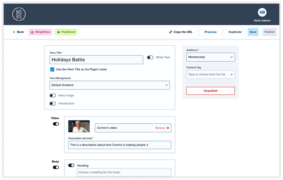 Corinne Crabtree, the founder of NoBS WeightLoss, created the program after her own 100-pound weight loss journey, focusing on mindset transformation. The program's rapid growth from a basic WordPress site led to significant scalability challenges. To better serve its large community and coaching staff (many of whom were former members), the decision was made to migrate to a robust, custom-built platform.